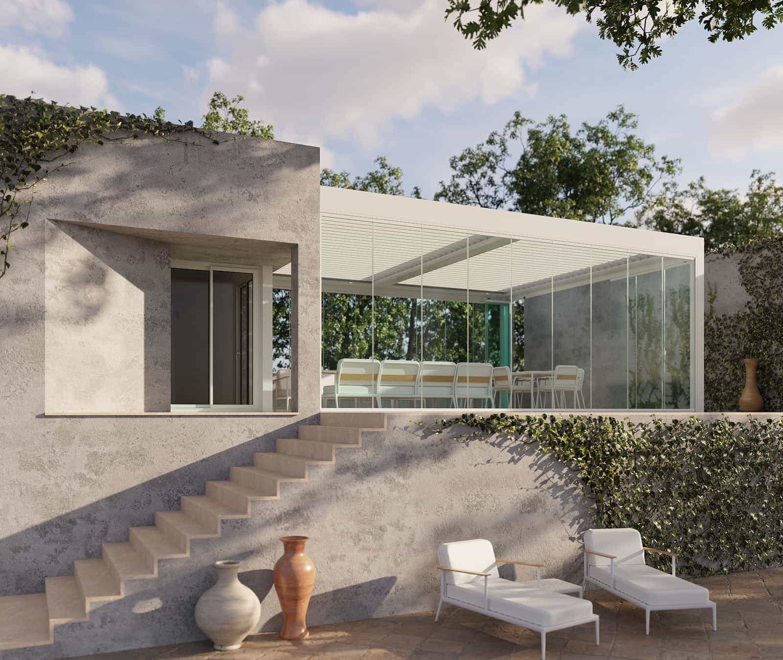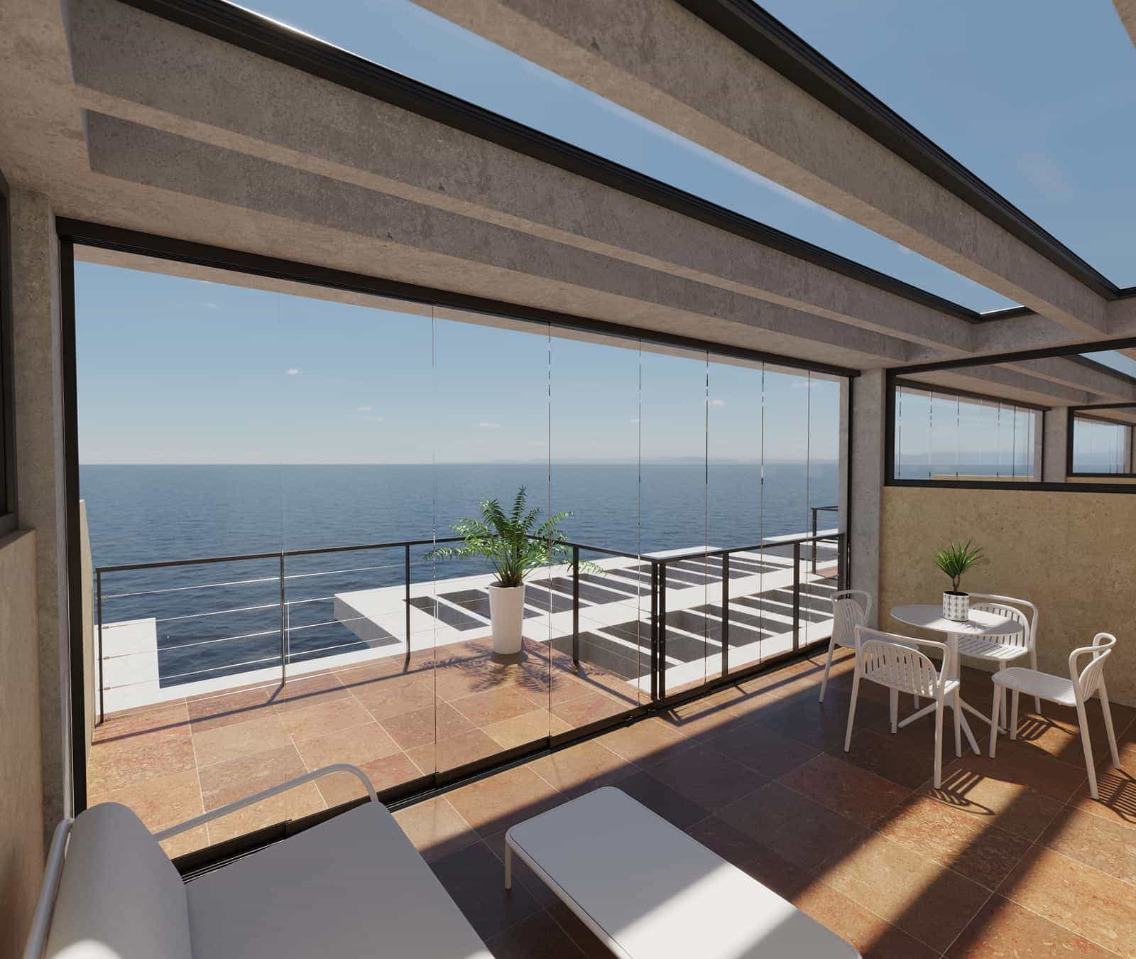 La cortina de vidrio convierte tu terraza, balcón o porche en una estancia mucho más habitable y protegida, para que puedas disfrutarla durante todo el año. Te resguarda del viento, la lluvia o el polvo, permitiéndote ganar metros útiles sin renunciar a la luz ni a las vistas.