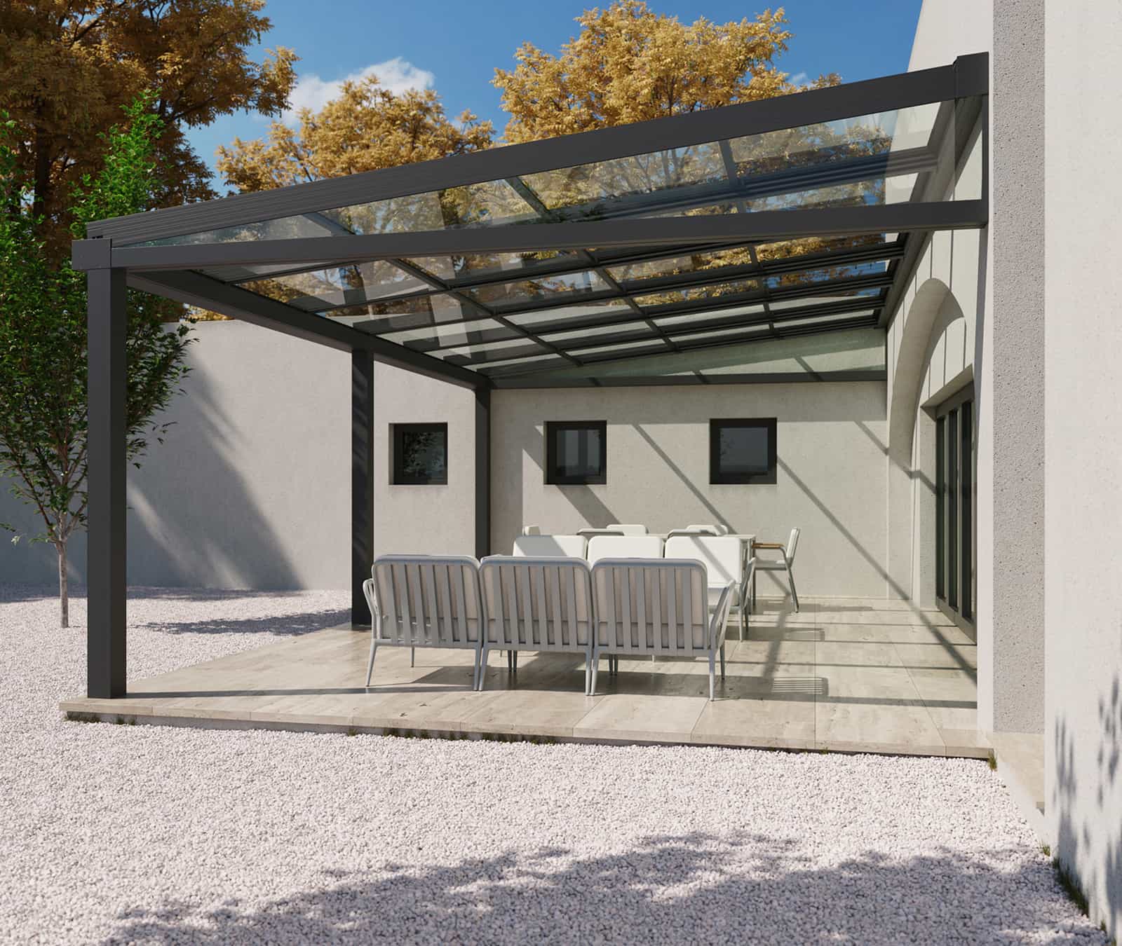 Techos fijos de panel de aluminio autoportante. Ofrecen una estructura sólida y de alto rendimiento. Diseñados para proporcionar aislamiento térmico y acústico, mejorando la eficiencia energética del espacio. Sistema modular que permite adaptarse a cualquier entorno y a la resistencia del aluminio. Perfectos para cubrir grandes áreas sin necesidad de soporte adicional, asegurando una instalación rápida y segura.