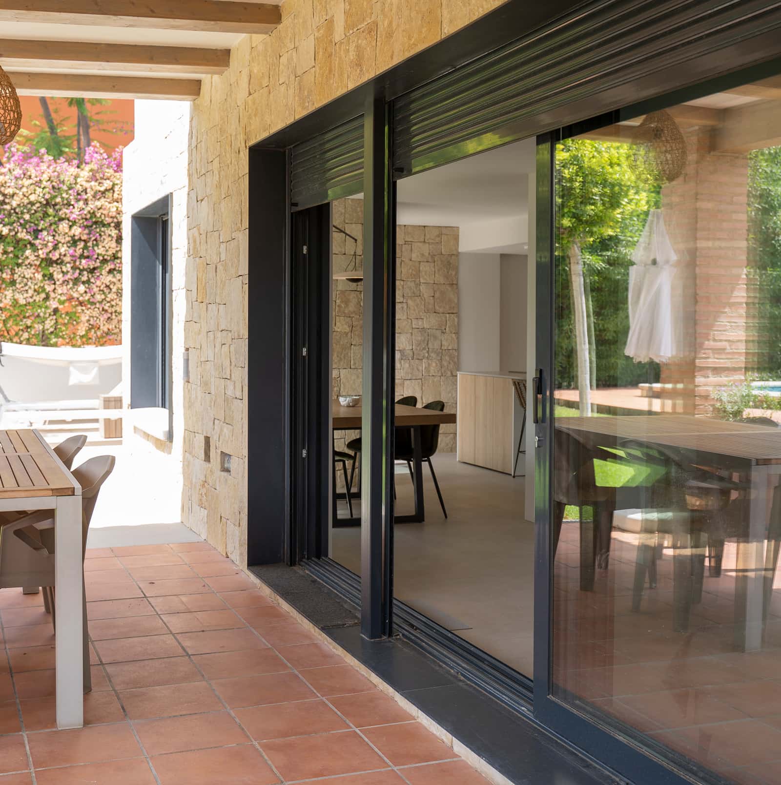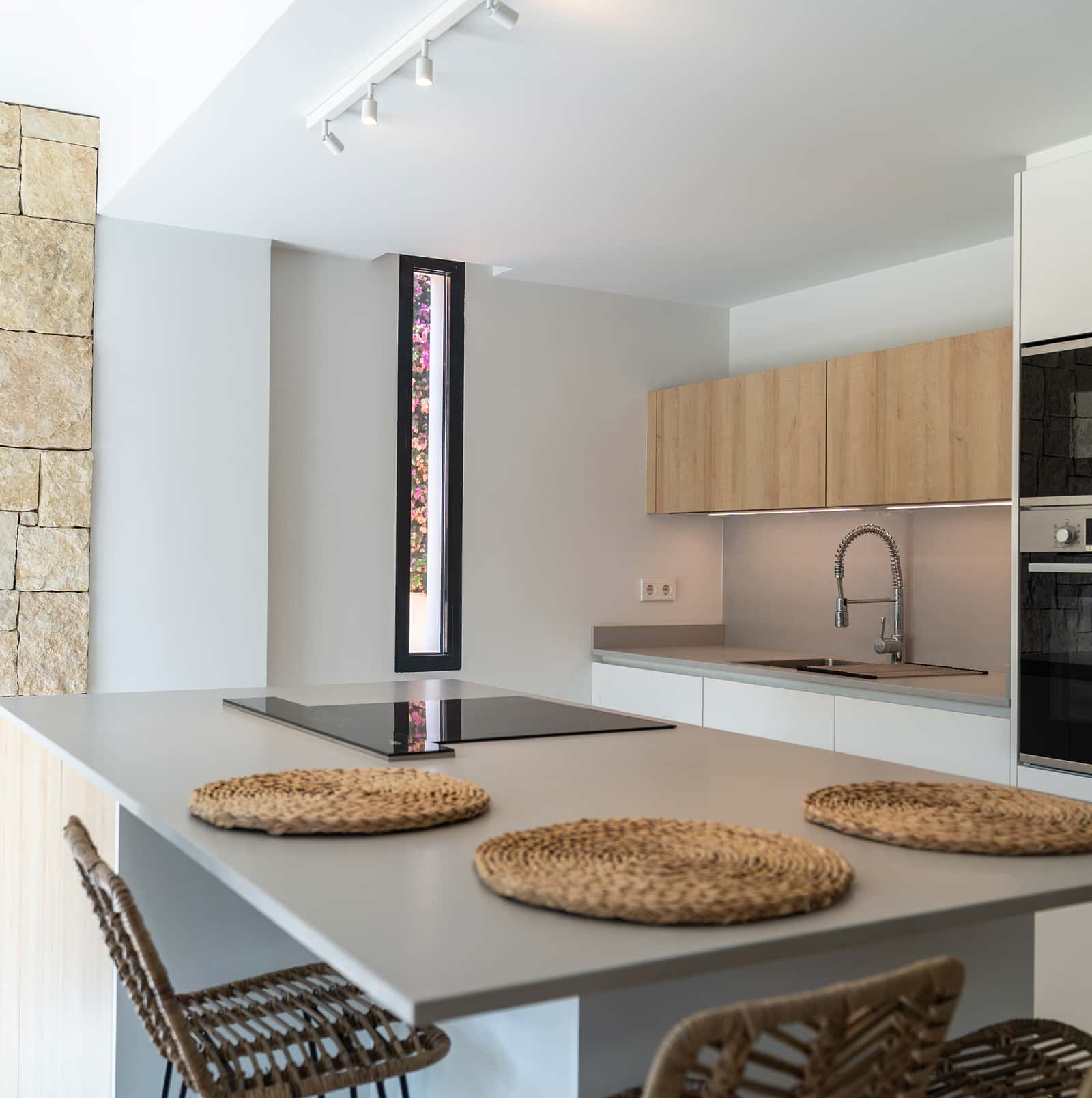 Hay muchas formas de acabar el exterior de una casa pero en esta se decidió que fuera una casa de piedra y pared blanca. Su color claro ayuda a que no absorba gran cantidad de calor proveniente del sol un proyecto con el que disfrutamos muchísimo.